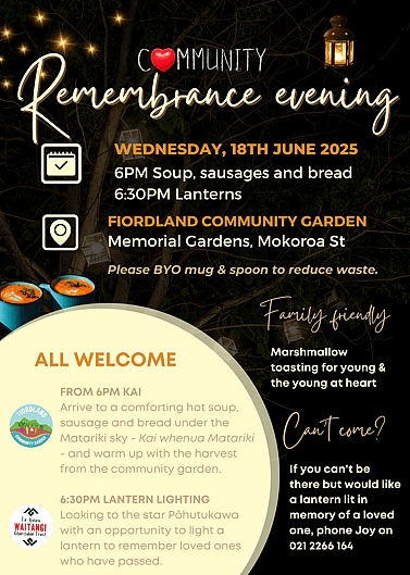 Other highlights include a concert at Te Anau’s Lions Park on Saturday, 8 February, 11 am - 3 pm, featuring live entertainment from Ngā Herenga Waka (Waihōpai Invercargill), Te Anau School Kapa Haka, music from Top of the Hour (Ōtepoti Dunedin), Niccolo Piccolo (Pōneke Wellington), plus heaps of kai/food including hāngi, and for the tamariki a giant sandpit and water slide.